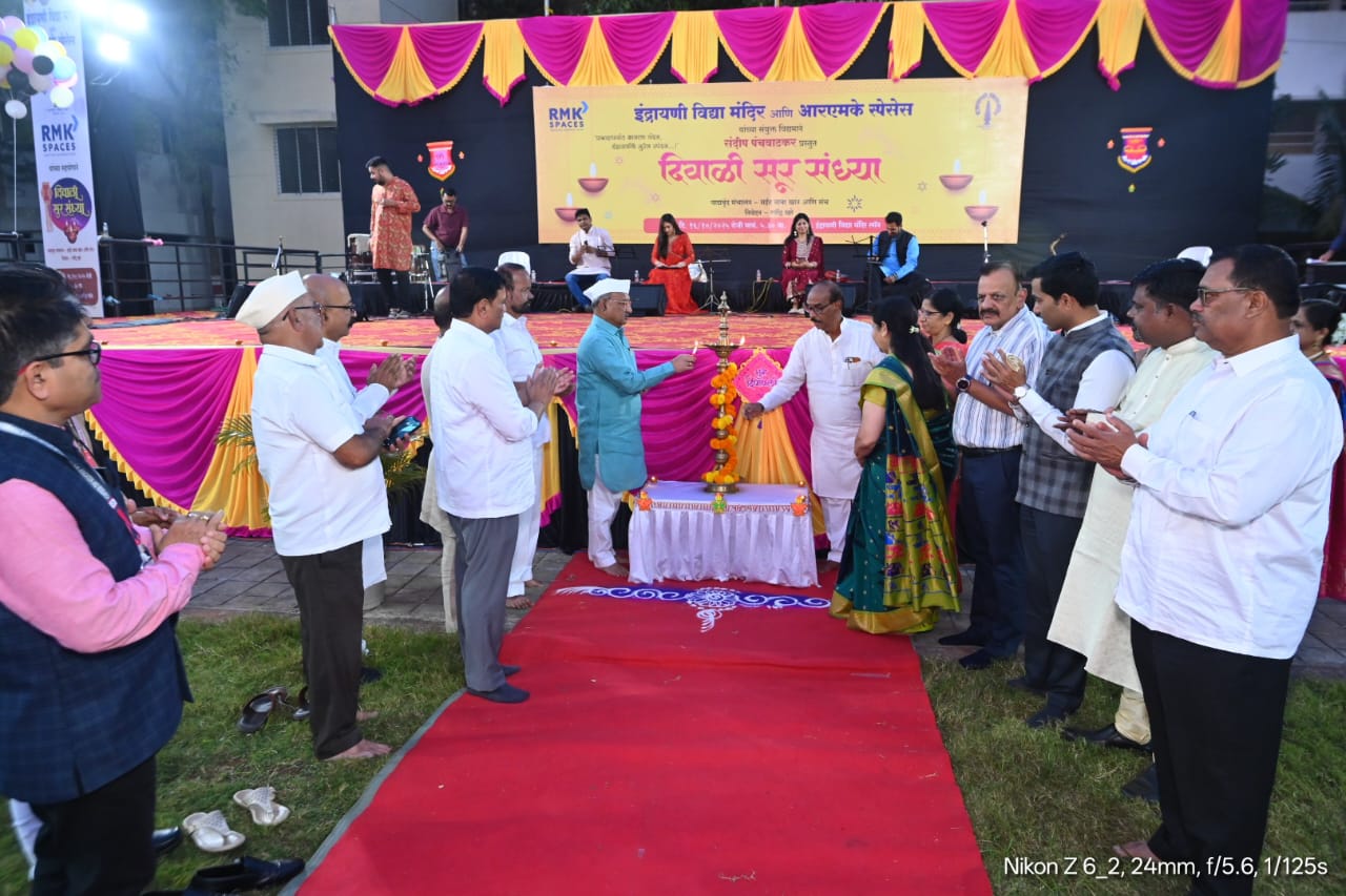 मावळ ऑनलाईन – इंद्रायणी विद्या मंदिर संस्थेच्या वतीने दिवाळी सणाच्या (Talegaon Dabhade)पार्श्वभूमीवर दिनांक (१६ ऑक्टोबर) रोजी दिवाळी सूर संध्या या कार्यक्रमाचे आयोजन करण्यात आले होते. सामाजिक बांधिलकी म्हणून तळेगाव दाभाडे नगरी तसेच मावळ पंचक्रोशीतील विद्यार्थी, नागरिक, आजी-माजी विद्यार्थी, पालक तसेच संस्थेतील शिक्षक शिक्षकेतर कर्मचारी यांच्यासाठी या सांगितिक मैफिलीचे आयोजन संस्थेच्या माध्यमातून करण्यात आले होते. याप्रसंगी इंद्रायणी विद्या मंदिर संस्थेचे अध्यक्ष रामदास काकडे, कार्यवाह चंद्रकांत शेटे, उपाध्यक्ष शैलेश शहा, उपाध्यक्ष संजय साने ,खजिनदार निरुपा कानेटकर, इतर संस्था पदाधिकारी, तसेच इंद्रायणी महाविद्यालयाचे प्राचार्य डॉ.संभाजी मलघे, फार्मसी महाविद्यालयाचे प्राचार्य डॉ. संजय आरोटे, इंजिनिअरिंग महाविद्यालयाचे प्राचार्य डॉ. साहेबराव पाटील, विद्यार्थी, शिक्षक, शिक्षकेतर कर्मचारी व तळेगावातील नागरिक मोठ्या संख्येने उपस्थित होते.
