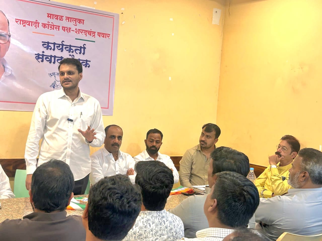 मावळ ऑनलाईन –आगामी स्थानिक स्वराज्य संस्थांच्या निवडणुकांच्या पार्श्वभूमीवर राष्ट्रवादी काँग्रेस पार्टी – शरदचंद्र पवार पक्षाचे चिन्ह तुतारी घराघरात पोहोचवा. बोगस मतदारांबाबत हरकती घेऊन मतदार याद्या दुरुस्त करण्यासाठी भूमिका घ्या, अशा सूचना युवा नेते युगेंद्र पवार यांनी मावळ राष्ट्रवादीच्या कार्यकर्त्यांना दिल्या.